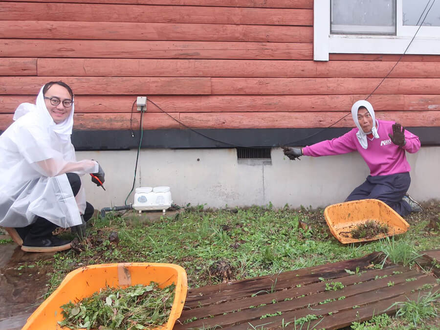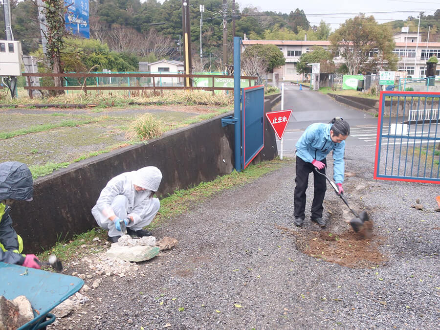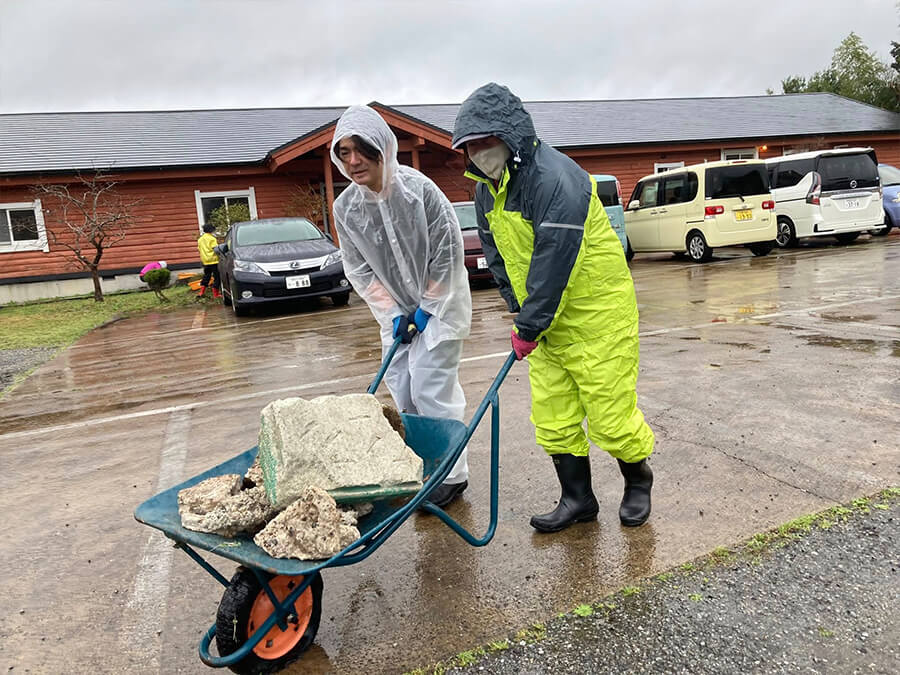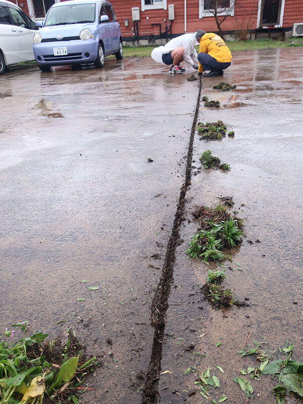 初の雨でしたが、おかげで草が抜きやすかったり、水を使う掃除がはかどる、瓦礫の粉塵が舞いにくいなど、雨ならではの環境整備ができました。