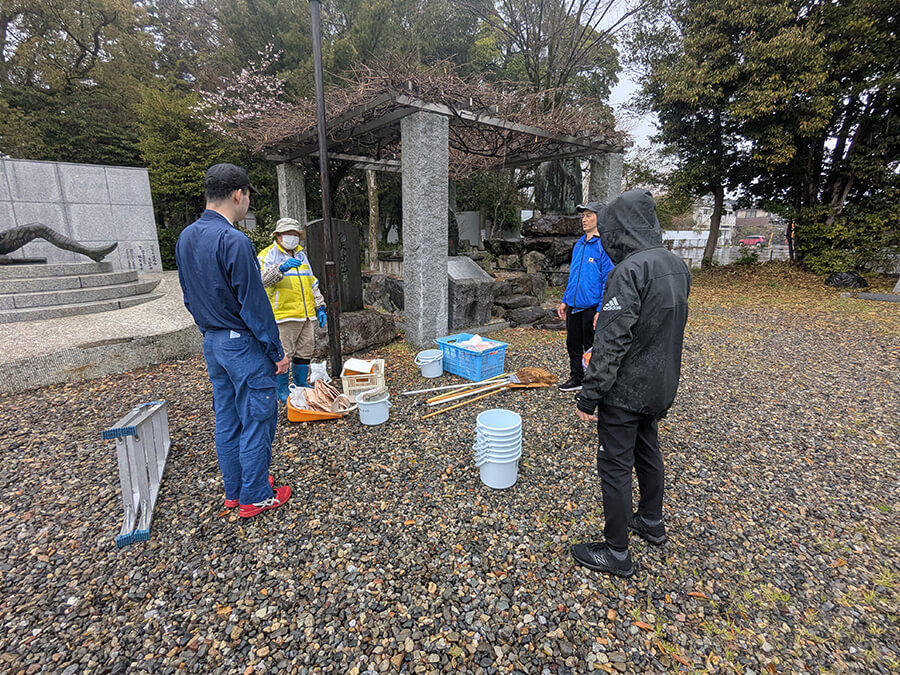 活動紹介 ホーム 活動紹介第135回 彦根掃除に学ぶ会 第135回 彦根掃除に学ぶ会 滋賀 彦根掃除に学ぶ会 境内清掃 2025.04.06 春の小雨降る中で、今回の掃除に学ぶ会を行うことができました。 今回も前回に引き続き滋賀縣護国神社のお掃除をさせて頂きました。 銅像の台座が、お掃除できていなかったようですので、皆で徹底的に掃除させて頂き、設立当時の様に綺麗にすることが、出来ました。 帰りに見た彦根城の桜がいつも以上に綺麗でしたので、思わず撮らせて頂きました。 彦根掃除に学ぶ会 川崎 雅弘