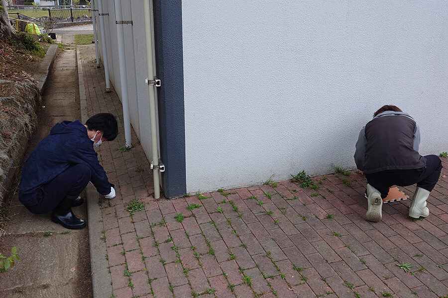 時間を間違った寳田さん家族には、トイレ周りの草取をお願いしたところ、レンガブロックの間に生える草を見事なまでに綺麗に取ってくれました。正に相談役が言われる「地味に、コツコツ、泥臭く」の実践です。