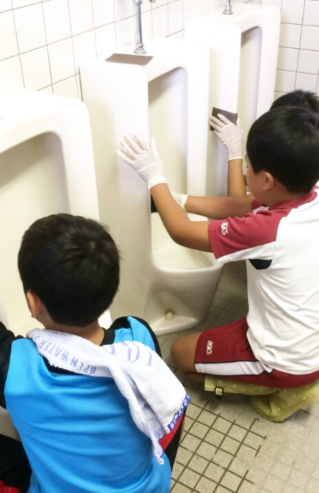 学校や公共施設のトイレをお借りして掃除実習を開催しています。先生や生徒、企業や地域の方々が一緒になってトイレを徹底的に掃除します。
