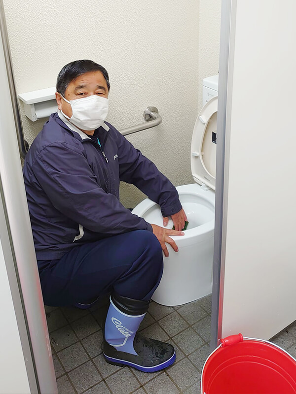 10名の方が参加してくださり、久しぶりのトイレ掃除研修です。半年ぶりの現場ですので、新しいトイレですけどそこそこ汚れていました。