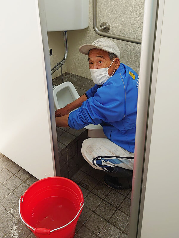 今回は、土居議員に誘われではなく脅かされ(?)て、現トイレを8年前に改修された市役所の課長さんがトイレ掃除に初チャレンジしてくださりましたが、初めてを感じさせない熱心振りに、見ている方が感動して頭が下がりました。ありがとうございます。会の新しい仲間にキープです。
