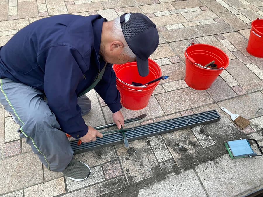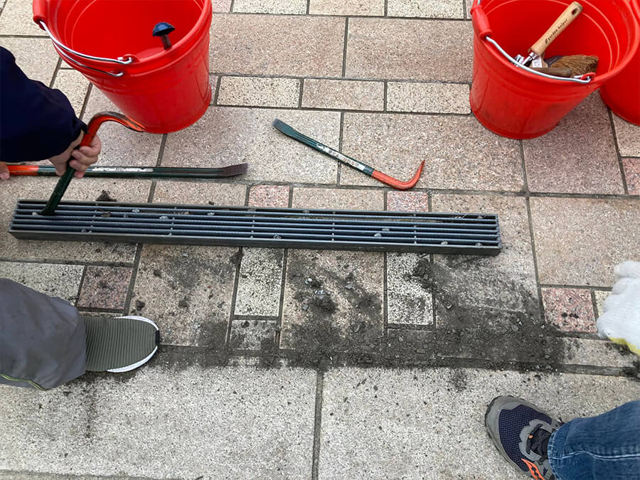 先々月、先月、そして今月と3ヶ月続けてのグレーチングのお掃除をしました。