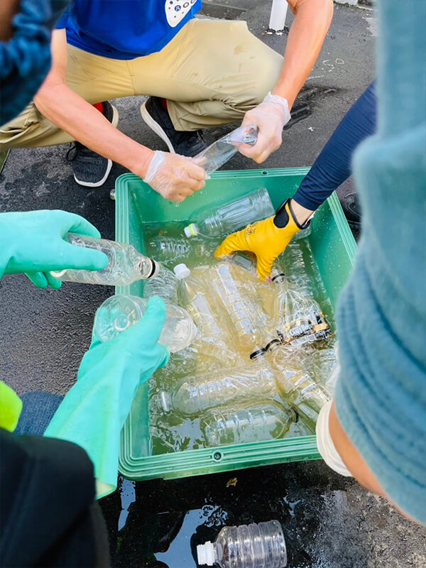 前回から始めた、ペットボトルのリサイクルへのお手伝いで、中をキレイに水洗いもしています。