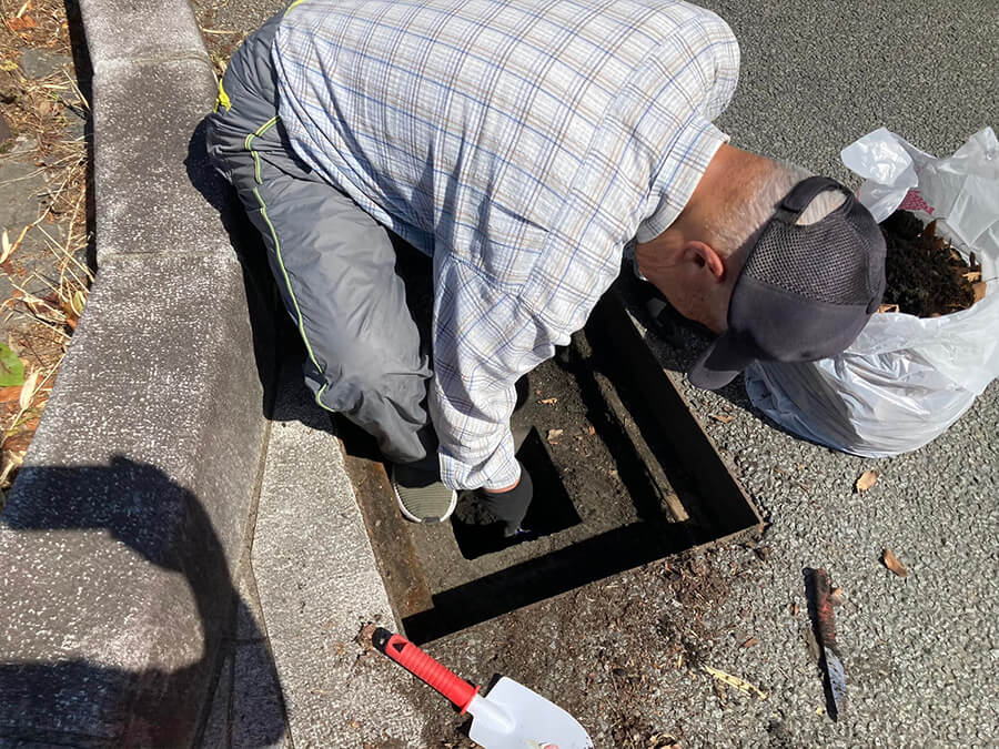 梅雨入りを前に、伸びてきた草刈り、グレーチングの掃除、植え込みのゴミ拾いを三班に分かれて行いました。
