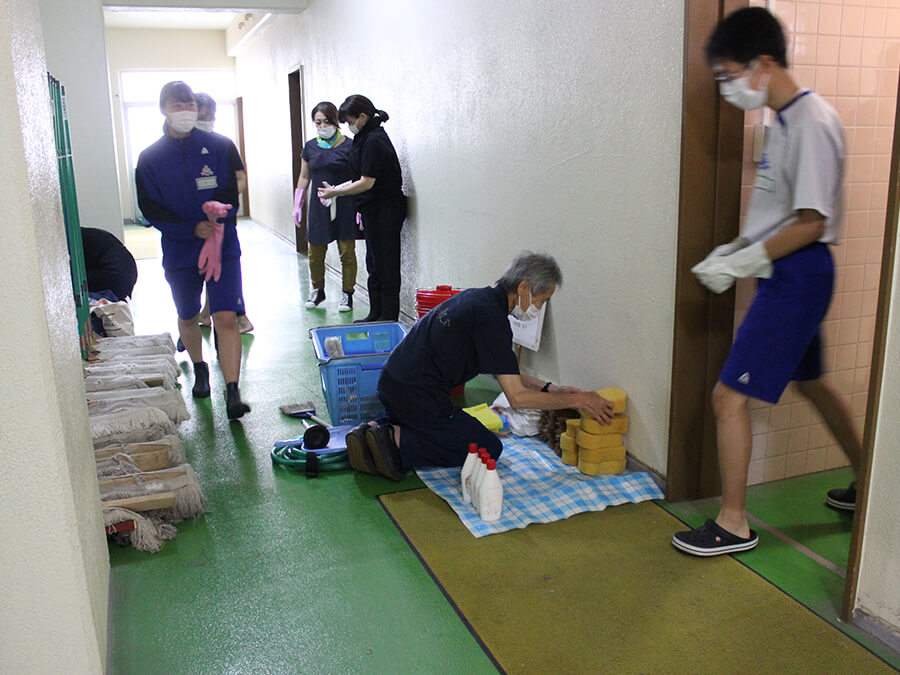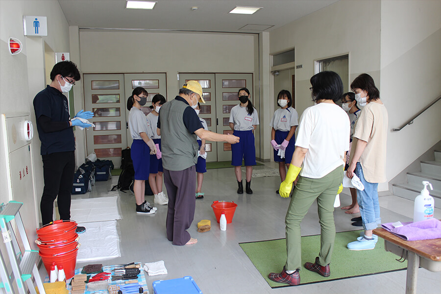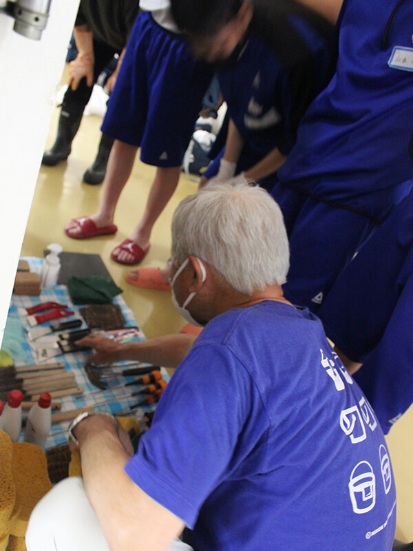 佐屋中学校での開催は2回目ですが、今回、40年間手つかずの武道場の男子トイレの尿こしをきれいに磨いておられた長嶺先生とお話しする機会に恵まれ、紫陽花を7本から200本にした事や、佐屋中学への想いを伺いました。