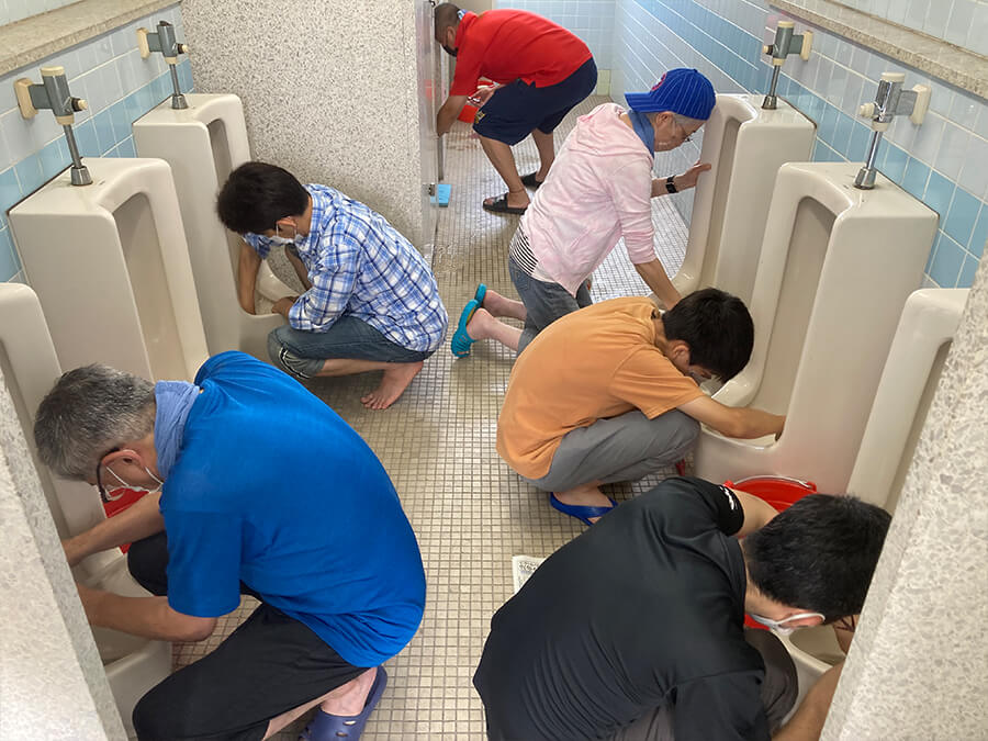 学校でのトイレ掃除は、半年ぶりでした。みんなと一緒に汗を流して心を磨き、トイレもピッカピカになりました。有難うございました。