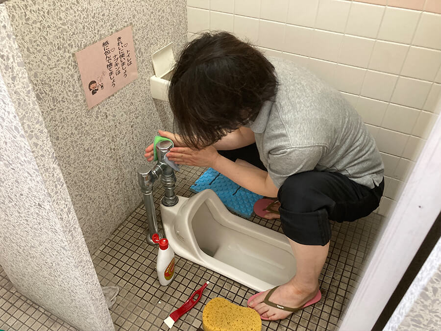 一点、素足でのトイレ掃除が気になりました。安全面を考慮して履物を履いた方がいいですね。
