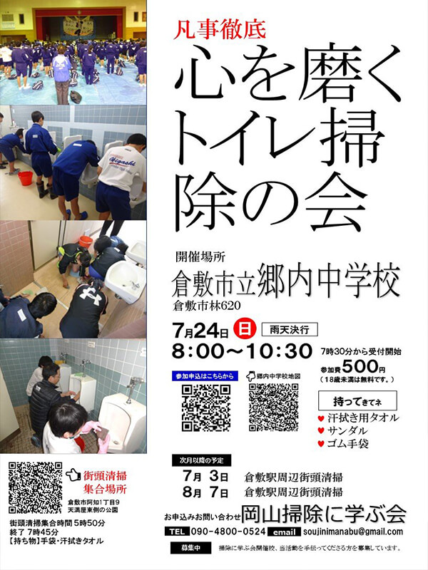 岡山掃除に学ぶ会 「第241回 心を磨くトイレ掃除の会 郷内中学校」