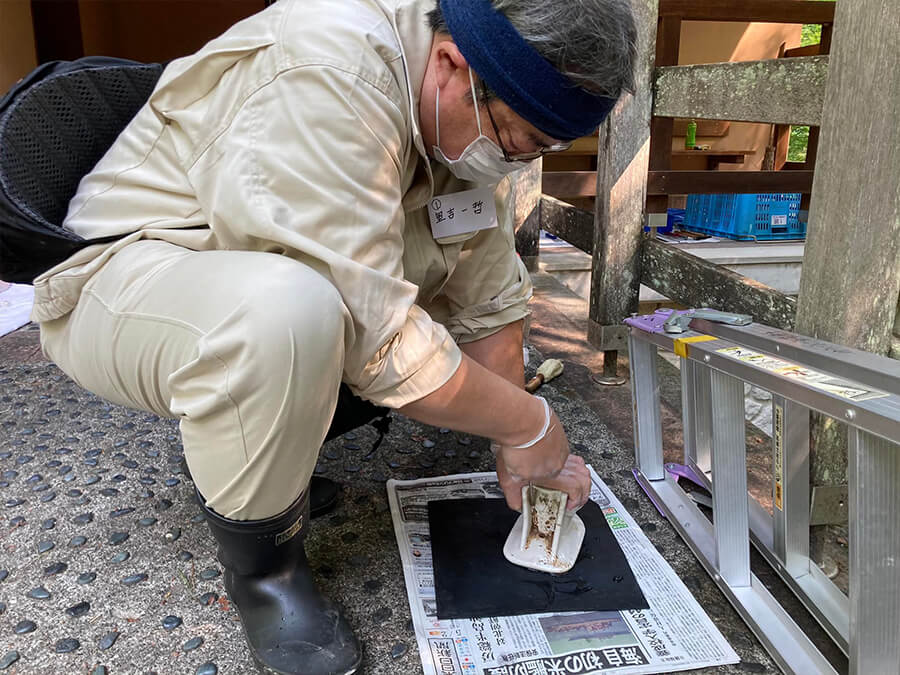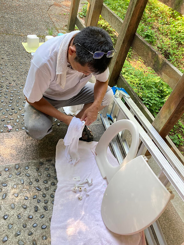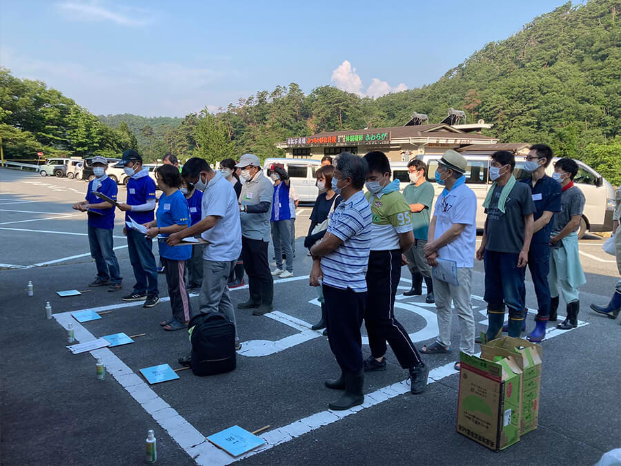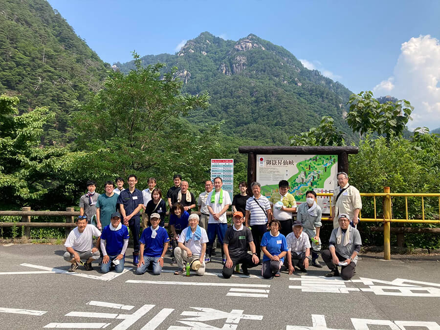 開会式では、「昇仙峡の景色と融合出来るくらいピカピカにしましょう!」とおっしゃっていただき、猛暑の中皆さん汗だくになりながらトイレを磨きました。