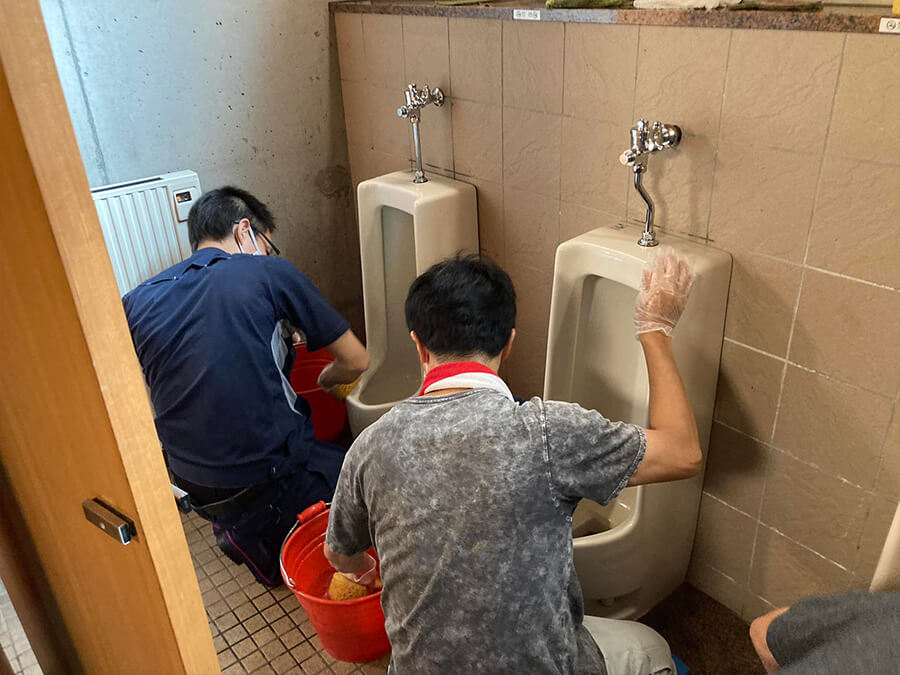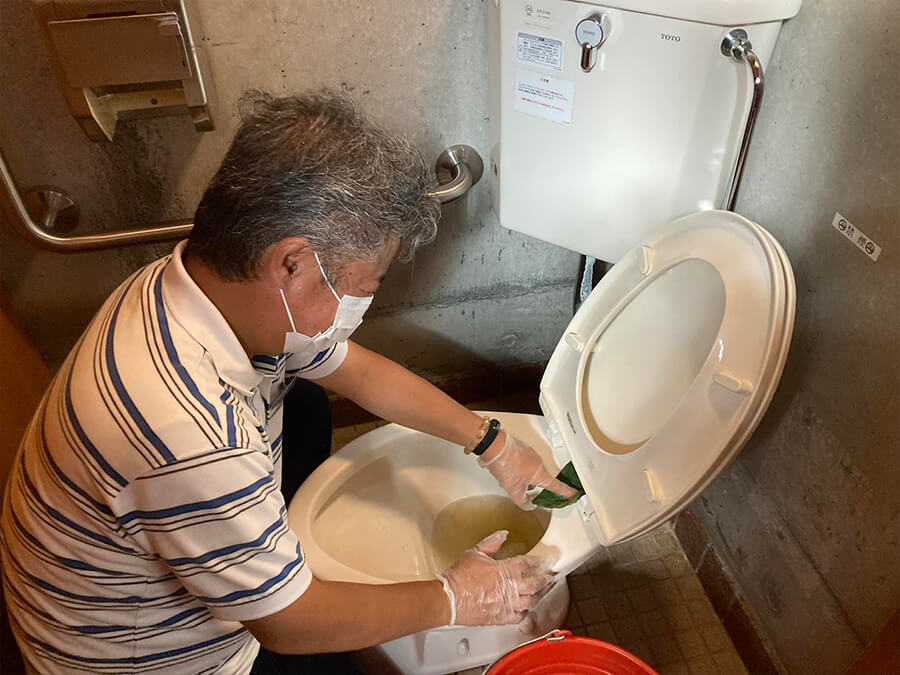 途中、水分補給の休憩をとりながら、皆さん黙々と頑張って磨いて下さったおかげでテーマの通り日本一キレイな公衆トイレになったと思います! 参加して下さった皆様、暑い中お疲れ様でした!