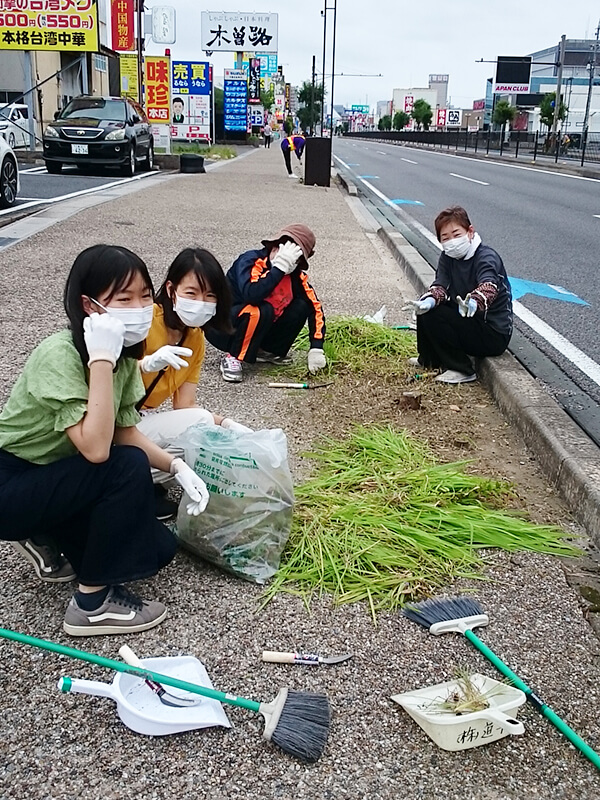 沿道の草取り、実にいいところに着目し掃除されましたね。大勢の皆さん、暑さ厳しい中での活動ご苦労様でした。