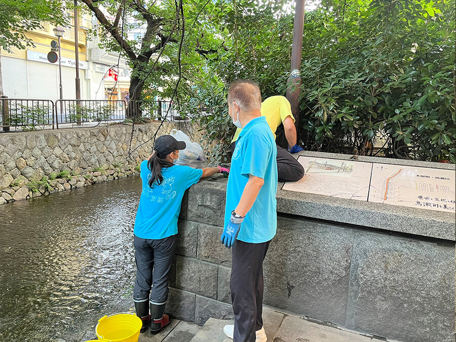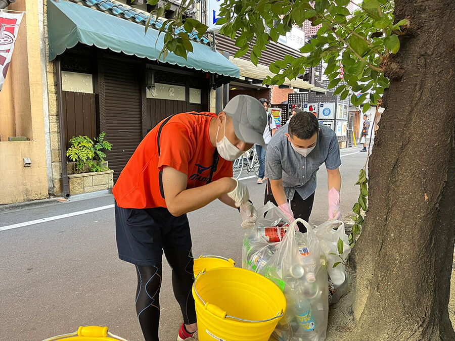 リーダーを務める戸田さんから「ベンチに座っている人たちの周辺に散らかっているゴミをどいてもらうことなく、そっと拾ってみるように」とのご指導を受けました。確かにこれまでは周囲に人がいる場合は後回しにしてゴミを拾っていましたが、気配を消すようにそっとゴミ拾いをしてみるとスムーズにゴミ拾いができました。掃除をしているという存在を誇ったように周りに見せていないか、改めて考えさせられました。