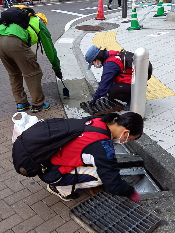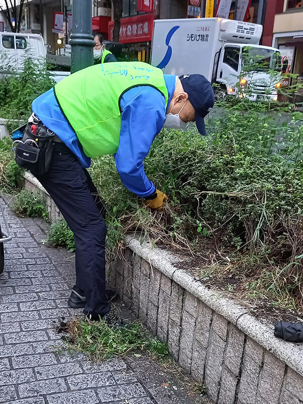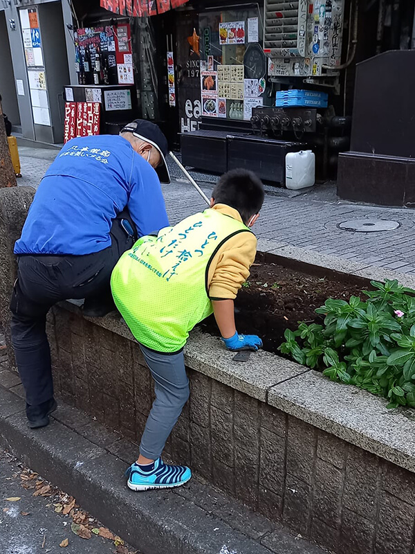 1. グレーチング 2. 道玄坂のゴミ拾い 3. 植え込み(花壇)の草除去 で行いました。