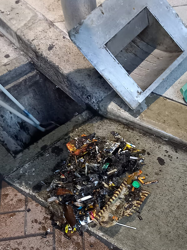 グレーチングには、雨が多かったからなのか、道路の泥が流れてたまってました。その上にタバコの吸い殻、ゴミがミルフィーユのように重なっていました。