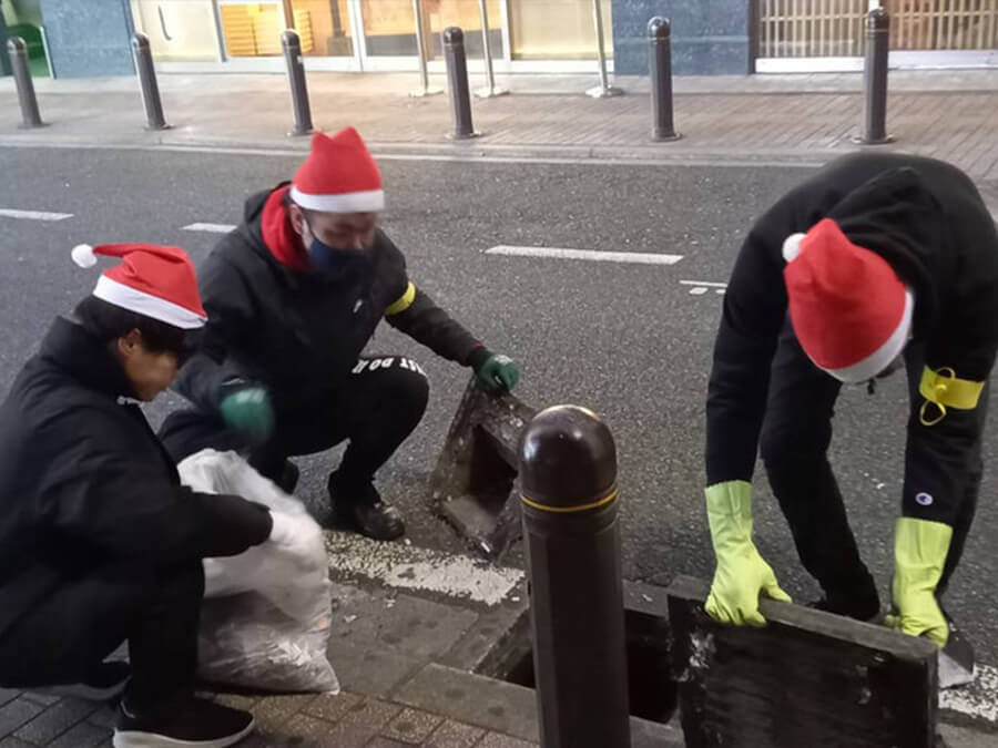 今朝のお掃除は3班体制。1、2班でホスト通りのグレーチングを全てキレイに仕上げました。3班はTOHOシネマズ周辺のゴミを拾い集めて、美しい環境にしました。