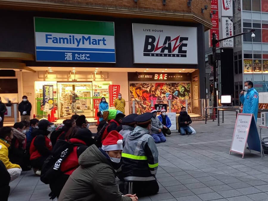 12月15日木曜日。寒波の訪れとなり、手が冷たくなる寒さの中、まだ日が昇らない時間に、今年最後の新宿歌舞伎町街頭清掃が行われました。