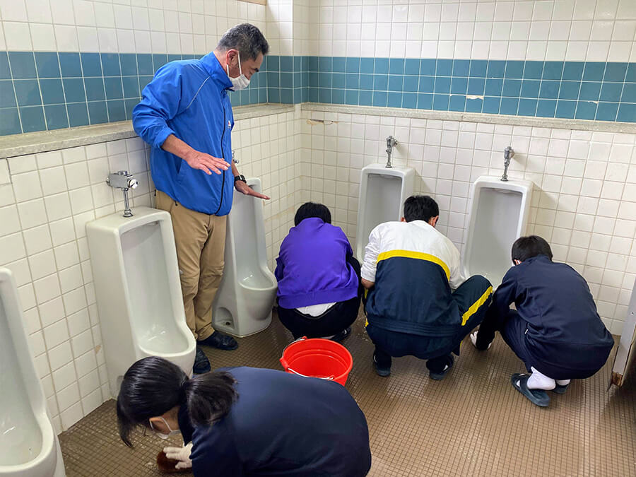 年末に二学年の田中先生を中心とした先生方が「鍵山教室」に参加され、「立志式」の一環として学校のトイレ掃除を指導していただけないかという嬉しいご相談をいただきました。
