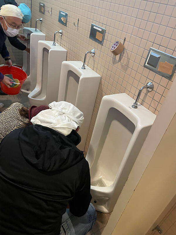 活動紹介 ホーム 活動紹介第272回 おやべ掃除に学ぶ会 第272回 おやべ掃除に学ぶ会 富山 おやべ掃除に学ぶ会 トイレ掃除 2023.01.22 2023年令和5年1月22日(日)午前6時30分より第272回おやべ掃除に学ぶ会が小矢部市市役所1階トイレにて開催されました。 大寒というのに例年とは違い優しい寒さの中15名の参加で皆さんと掃除に学びました。 おやべ掃除に学ぶ会 ヒデさんのワンポイントアドバイス トイレ清掃、お疲れさまでした。テーブルを囲んでの終了後の団らんは素敵ですね。今回は「人感センサー」について1点(画像1枚目)、 ガムテープを使用されていますが、粘着力が強いので、養生テープを使われたら良いと思いました。 また今回のケースでは難しいですが、タオルがかけられるところでしたら、濡らしたタオルを使うと、資源も使わず、そのまま拭き取りにも使用できて良いかと思います。 ぜひ試してみてくださいね。