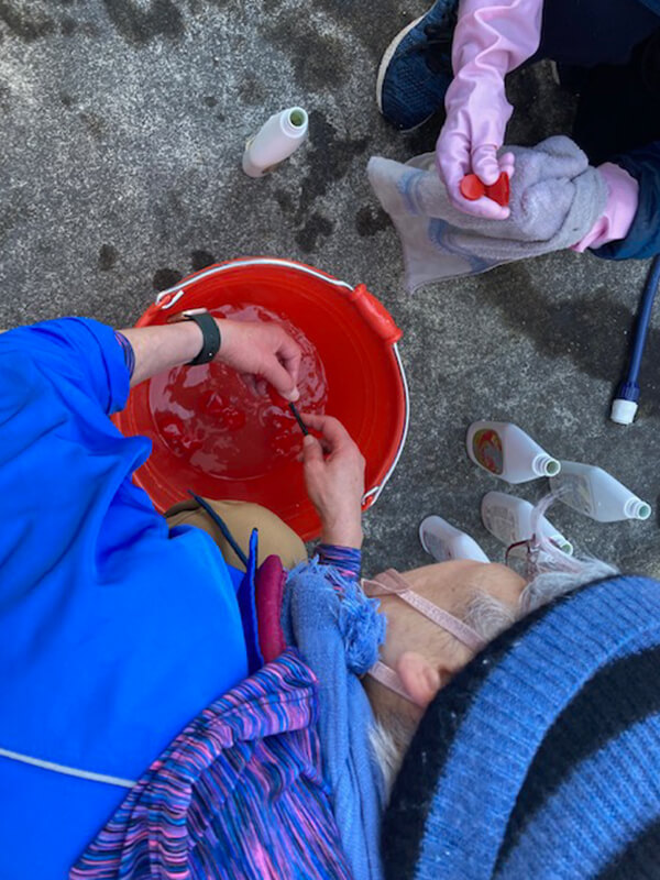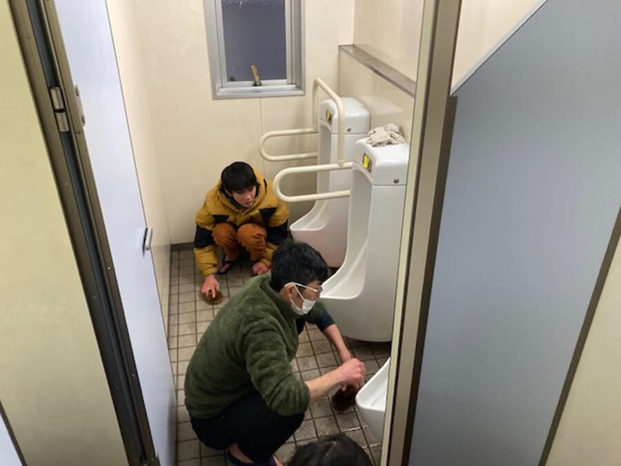 外気温は1℃、指先、足先の感覚が皆無。見事な寒さのなか、外トイレをお掃除しました。