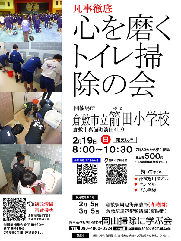 第247回岡山掃除に学ぶ会 心を磨くトイレ掃除の会は、倉敷市立郷内中学校で開催しました。(参加者11名)