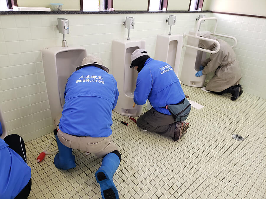 活動紹介 ホーム 活動紹介第109回 彦根掃除に学ぶ会 第109回 彦根掃除に学ぶ会 滋賀 彦根掃除に学ぶ会 トイレ掃除 2023.02.05 彦根城の内堀の中にある金亀公園でのトイレ掃除でした。 男子トイレの尿石がなかなか根性があって、1時間半、真剣に立ち向かいました。 綺麗になった便器を見て、寒かったが参加してよかった。今日一日が輝いて見えました。 彦根掃除に学ぶ会 川崎 雅弘 次回の活動予定 【日程】 2023年3月5日(日) 7時30分~9時30分 【集合場所】 彦根市金亀公園トイレ前 次回の開催案内を見る ヒデさんのひとこと こびりついた尿石取りは大変ですね。そこに諦めずの姿勢は立派です。次回は、その前後の写真を見させていただけたら嬉しゅうございます。