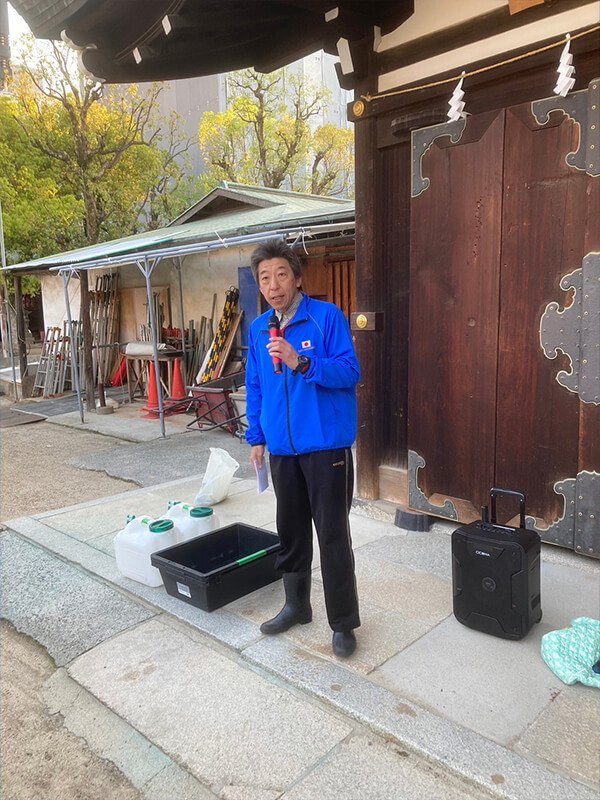 天神さんの境内をお掃除させていただいている大阪掃除に学ぶ会。