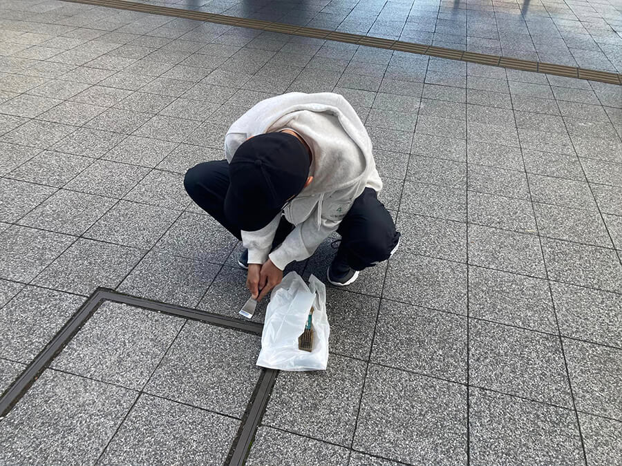 今日はいつものお掃除(ゴミ拾い、掃き掃除、ガム剥がし、ベンチ、電話ボックス、ポスト拭き)と、久しぶりに有料駐車場側のグレーチング下のお掃除をしました。