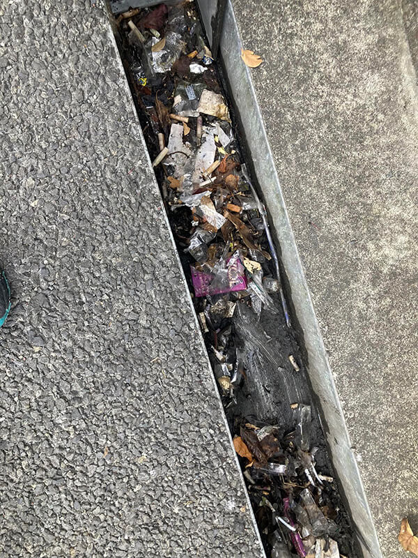 開けたグレーチングの下には落ち葉と土とそれに、たくさんの吸い殻…。