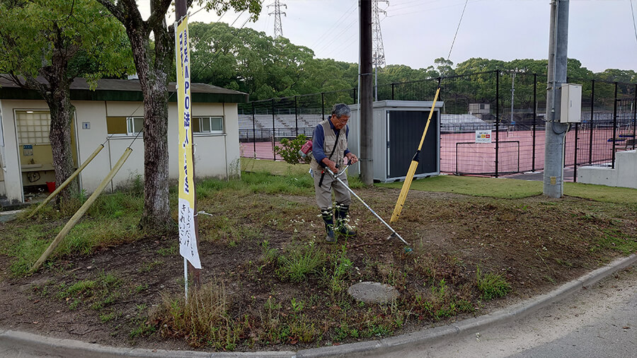 今回も福岡便教会の酒井先生が草刈り機持参で参加くださり、トイレ周囲の雑草を綺麗に刈り取ってくださったお陰で、終わった後は外部の景色も一変し、爽やかな雰囲気の漂う公衆トイレになりました。