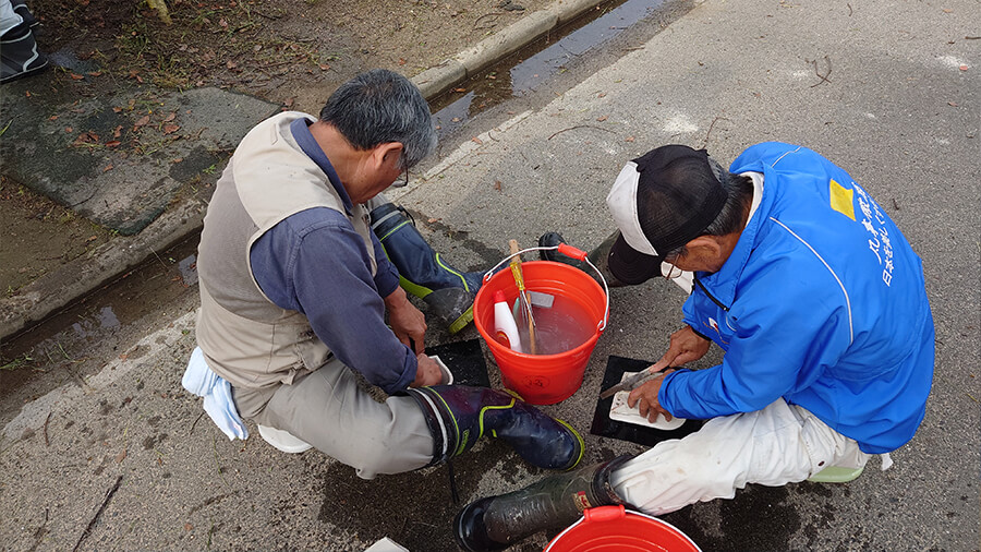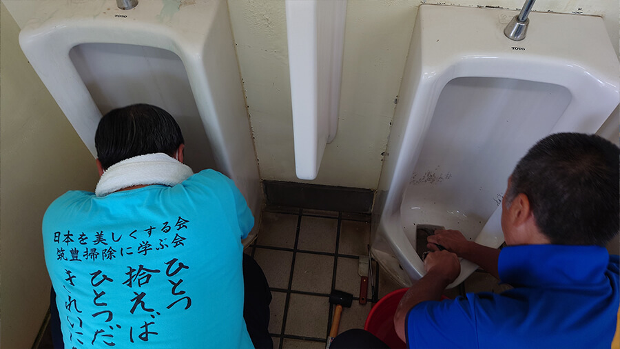ここは初めての場所で、事前点検で尿石がこびりついていましたので、前日の夕方からクエン酸処理を行って当日に備えました。