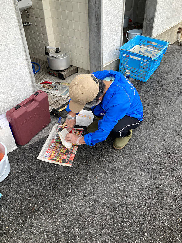 活動紹介 ホーム 活動紹介第117回 彦根掃除に学ぶ会 第117回 彦根掃除に学ぶ会 滋賀 彦根掃除に学ぶ会 トイレ掃除 2023.10.01 小雨の中、また何かと行事が重なり、3名の参加となりました。 3ヶ月前にやり残した水漉を一人一個づつ仕上げました。 彦根掃除に学ぶ会 川崎 雅弘 次回の活動予定 【日程】 2023年11月05日(日) 7時30分~9時30分(集合7時00分〜7時30分) 【集合場所】 滋賀縣護國神社トイレ 神社境内 ヒデさんのひとこと トイレ掃除の実践、素晴らしいですね。1点、水濾は陶器で柔らかく、臭気もありますので、新聞紙とゴムマットを下に敷いて掃除されることお勧めします。