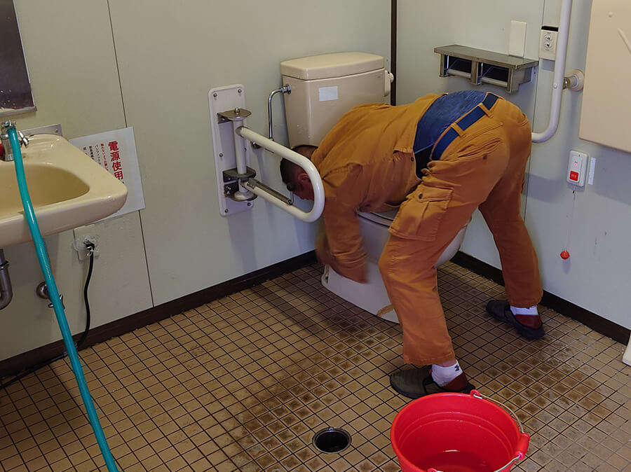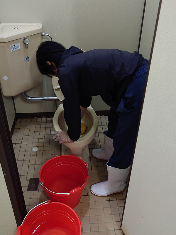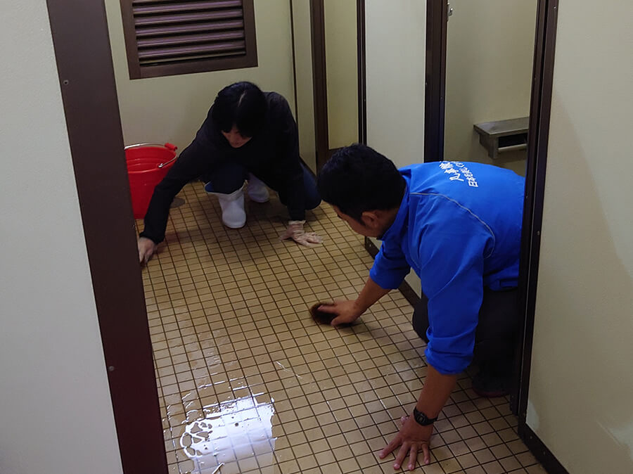 8ヵ月ぶりの掃除ですので、外だけでなく中もかなり汚れた状態となっていて、小便器は尿石が固まり始めていて、便器の汚れを取るのに時間がかかりました。