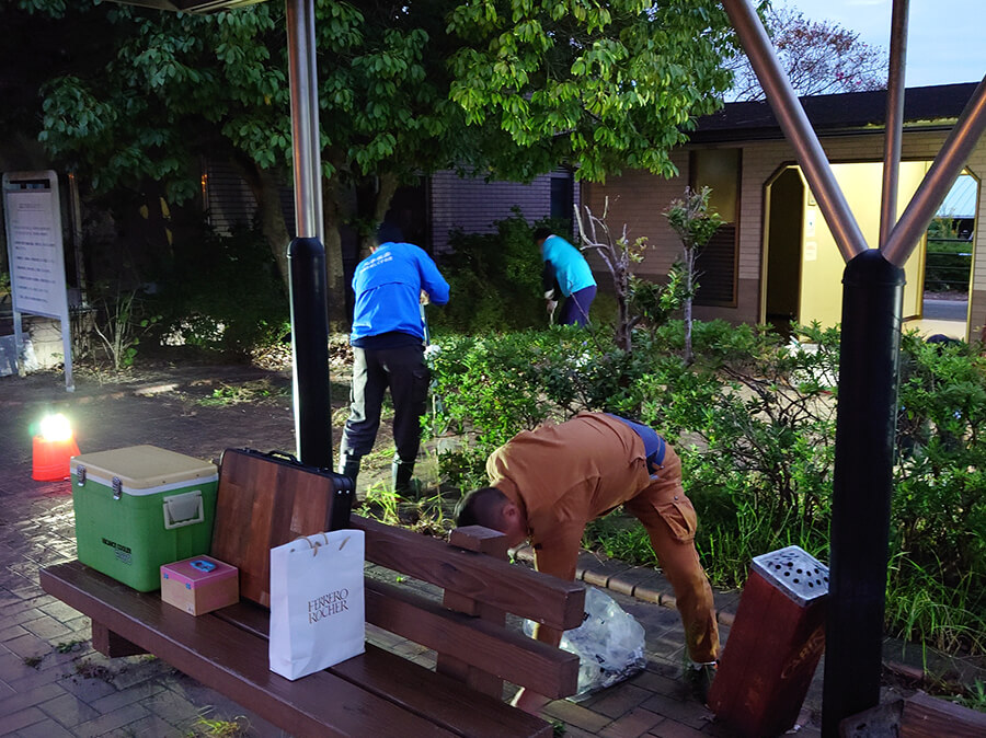集まった人から順にホウキやカマを使って、雑然となっている周囲の掃除から始めて約30分かかりましたが、ようやく整備された環境に戻ることができました。