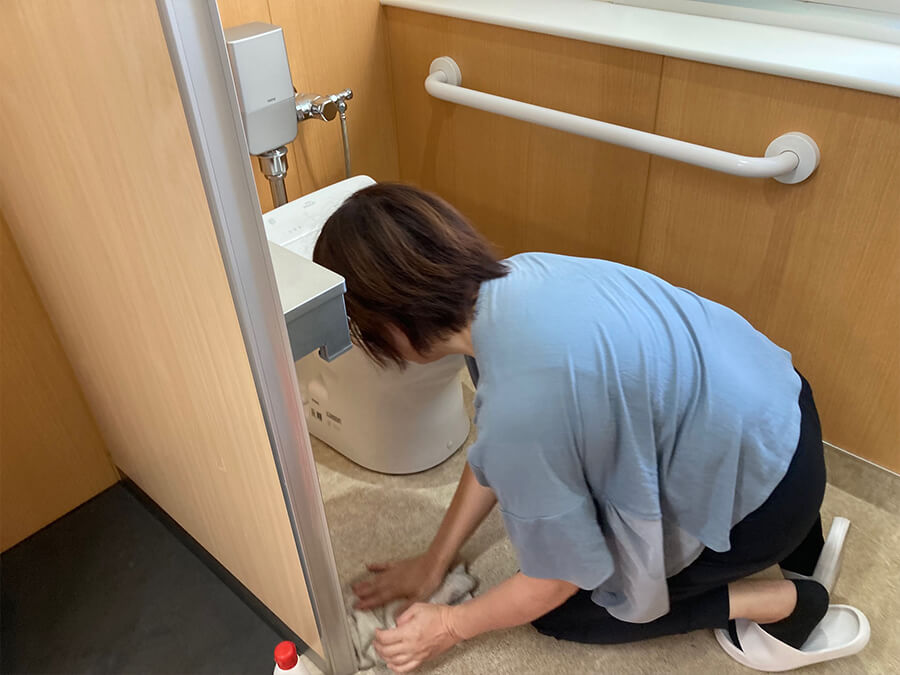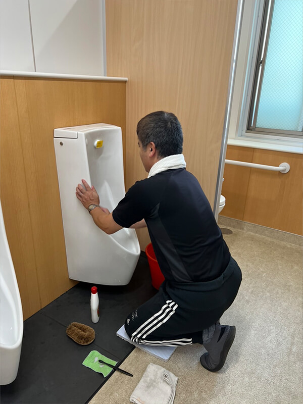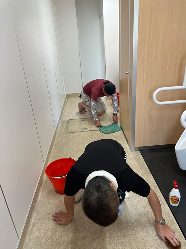特に、グラウンドの土で黒くなったトイレの床を、綺麗にすると、トイレ全体が明るくなりました。有難うございます。