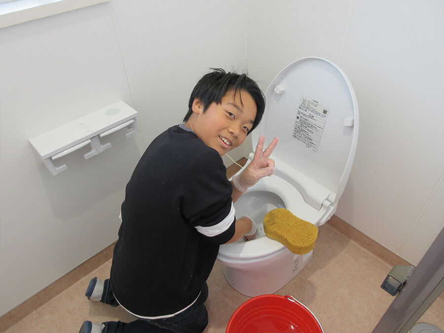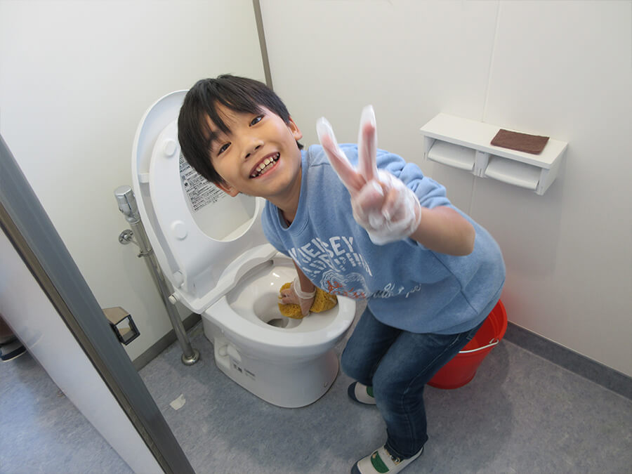 子供たちには初めての徹底的な掃除でしたが、奇麗になるのが楽しくて最後までよく頑張ってくれました。そして、終わった後は見違えるように奇麗になったトイレに皆が大感動です。