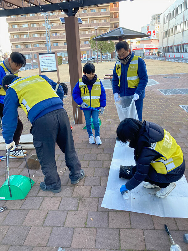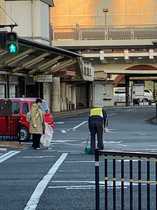 元旦恒例の、倉敷駅周辺街頭清掃。今朝は、17名の参加。