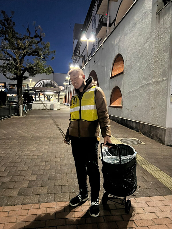 日の出前に集合し、真っ暗の中でスタート。ゴミ拾いをしている最中に日の出。ビルの谷間からご来光を頂き、ゴミがよく見えるようになりました。有難いことです。