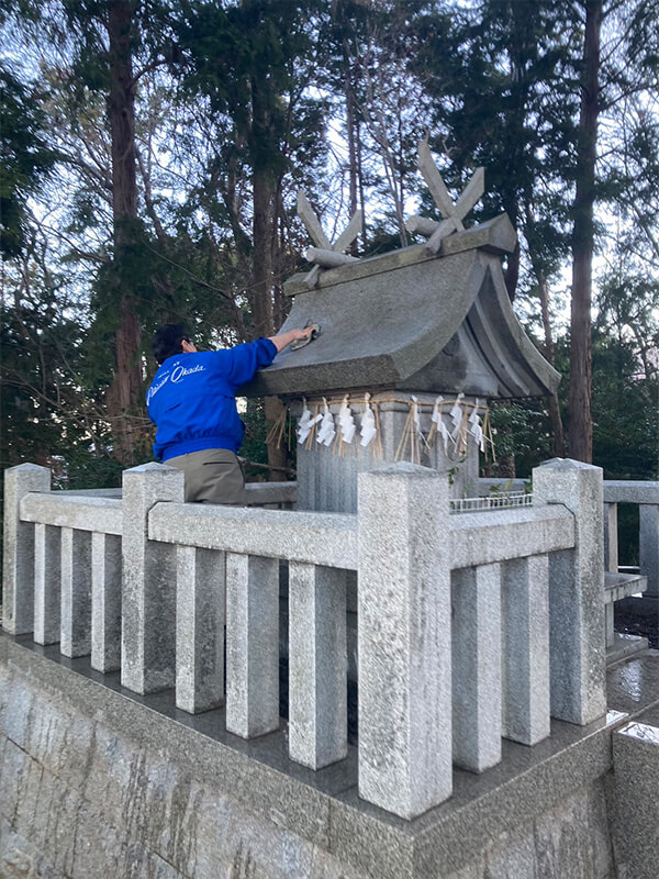 大変やけど社を磨いていると自然と笑顔か生まれますね。