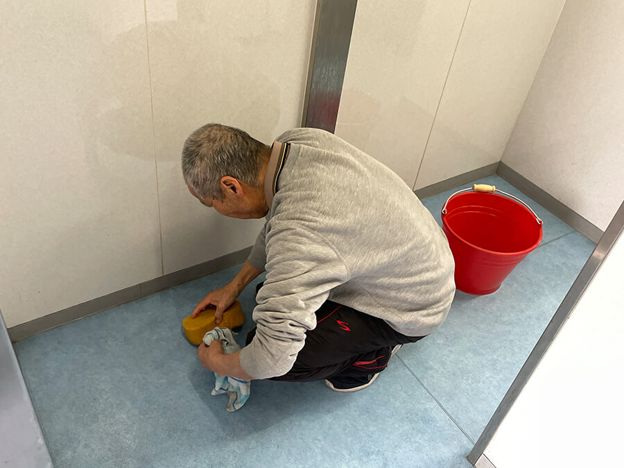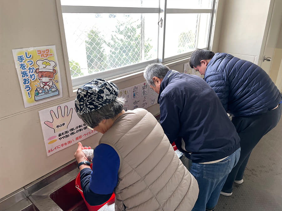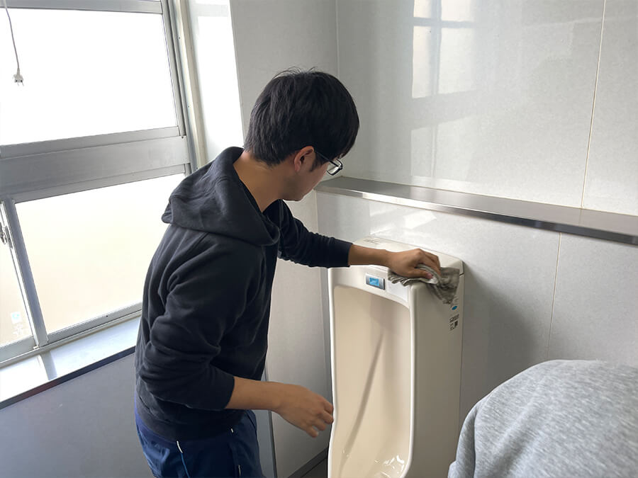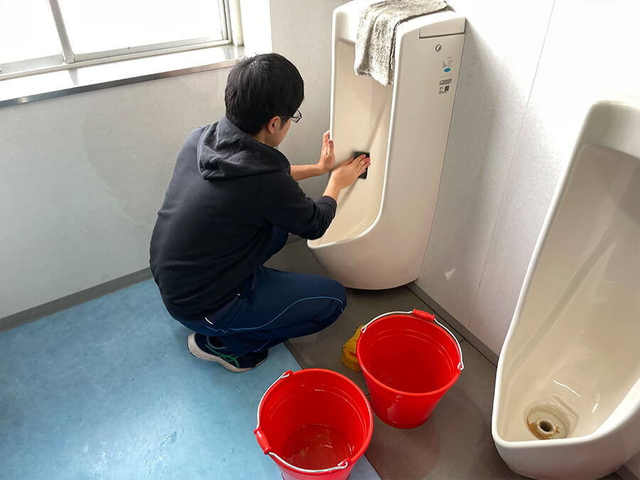 熱湯を活用し、壁→床→便器の順に、その都度、説明・確認をし、意味と意義を深めました。