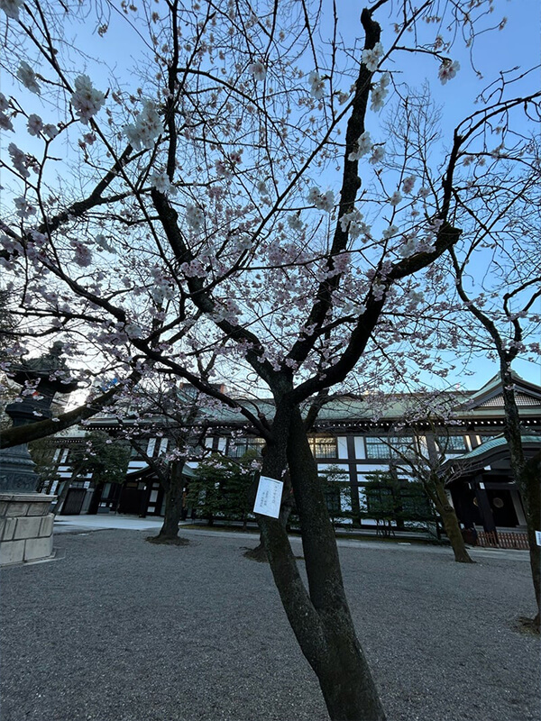 春はもう目の前、境内の桜は一本だけ見頃を迎えていました。