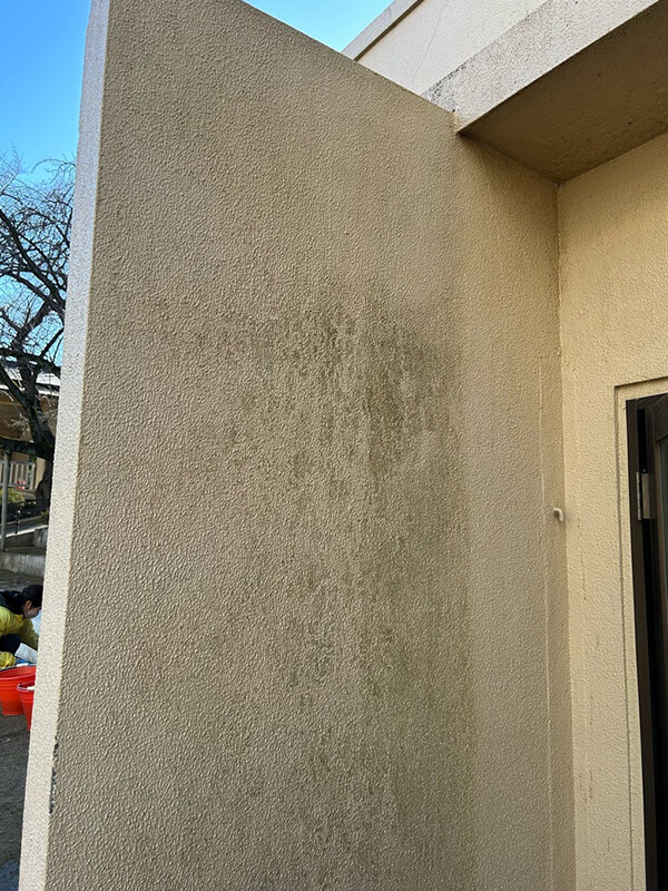 さらに観客席のコンクリートをタワシで磨くと真っ白な地が出てきました。一部だけですが、他とは明らかに違う美しさでした。