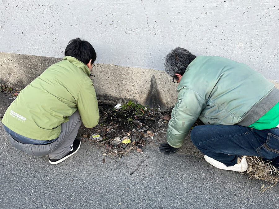 今回は、前回に引き続き、駐車場のグレーチングと硬貨道路側面の草木の刈込み剪定の2カ所を徹底して行いました。