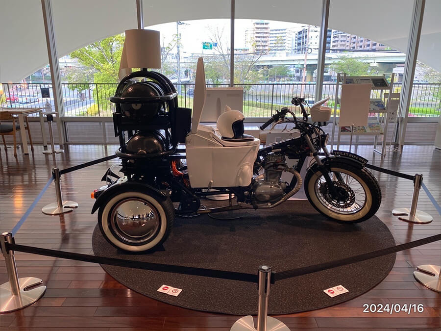 ・便座を乗せたしゃれたバイクは日本を縦断したそう。