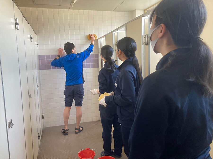 二日目は、一日目の学びを踏まえて牟礼中学校でのトイレ清掃です。それぞれの班に分かれてリーダー、サブリーダーの指示のもと、生徒の皆さんは熱心に取り組んでくれました。
