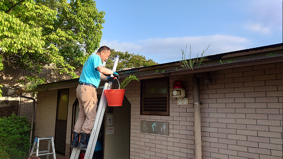 トイレの中だけではなく、周りまでも綺麗にすることで、公衆トイレから伝わってくる雰囲気までが向上し、見違えるほど凛として爽やかな空間が蘇りました。