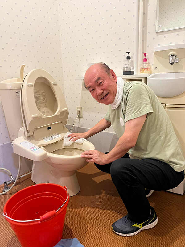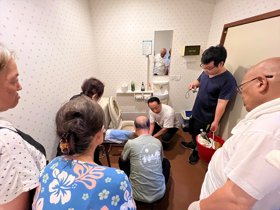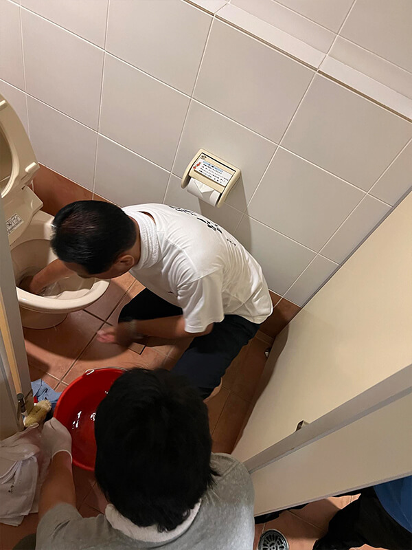 ホテル再建と社員教育をかねたトイレ掃除研修。