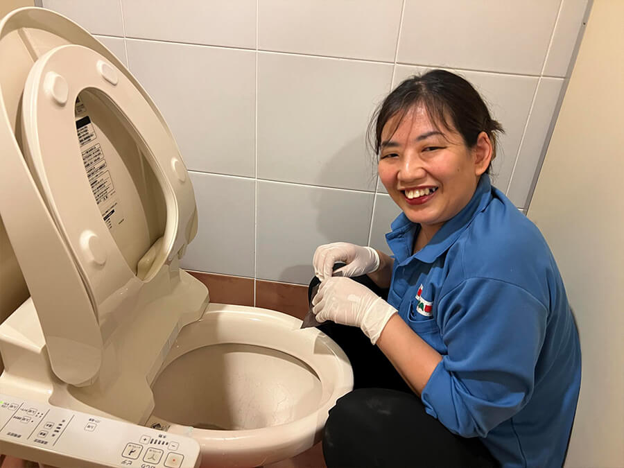 汚れも臭気もあったトイレは、見違えるように綺麗になり、社員の皆さんの顔も明るく、笑顔が戻ってきました。