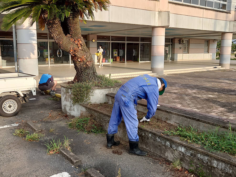 朝6時半前には一番で櫻井議員が駆けつけて周辺のゴミ拾いをしてありました。その後順に集まったものから、校舎前の雑草取りに励んでくださり、7時の開始前には整然とした玄関風景になりました。