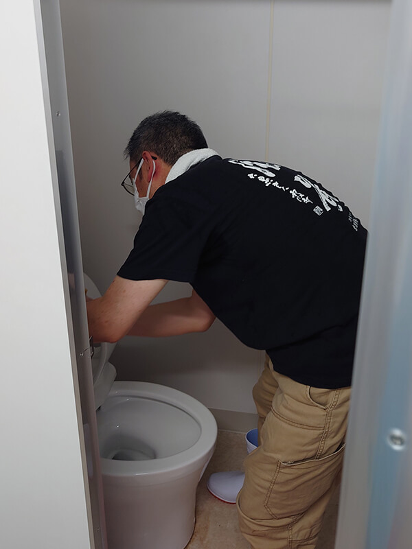 今回準備した新しいスペースショット洗剤は、中性洗剤よりも汚れ落ちがよく、掃除ができずに汚れていたビニール床が、タワシ等で磨いて拭き上げるだけで見事にきれいになり、その素晴らしい効果を確認できました。